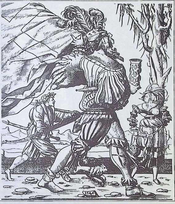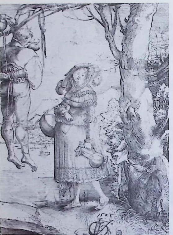 Например, гравюра Вольфганг Штрауха, «Ландскнехт Клаус Винтергрюн и его сын Хайнц» (1568 г.) рассказывает о том, как мальчик пиздил кур, а за ним погналась жена фермера, чтобы пиздить уже его, в процессе он порвал штаны
