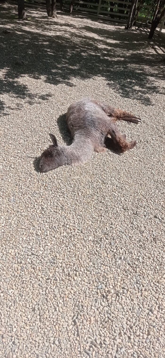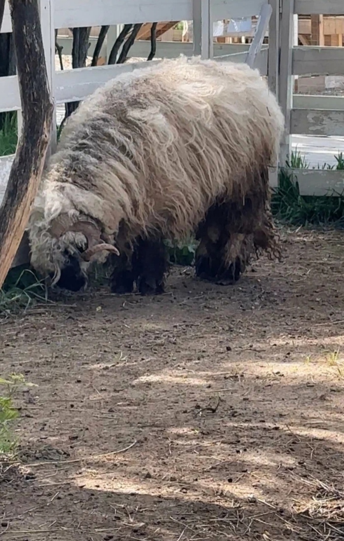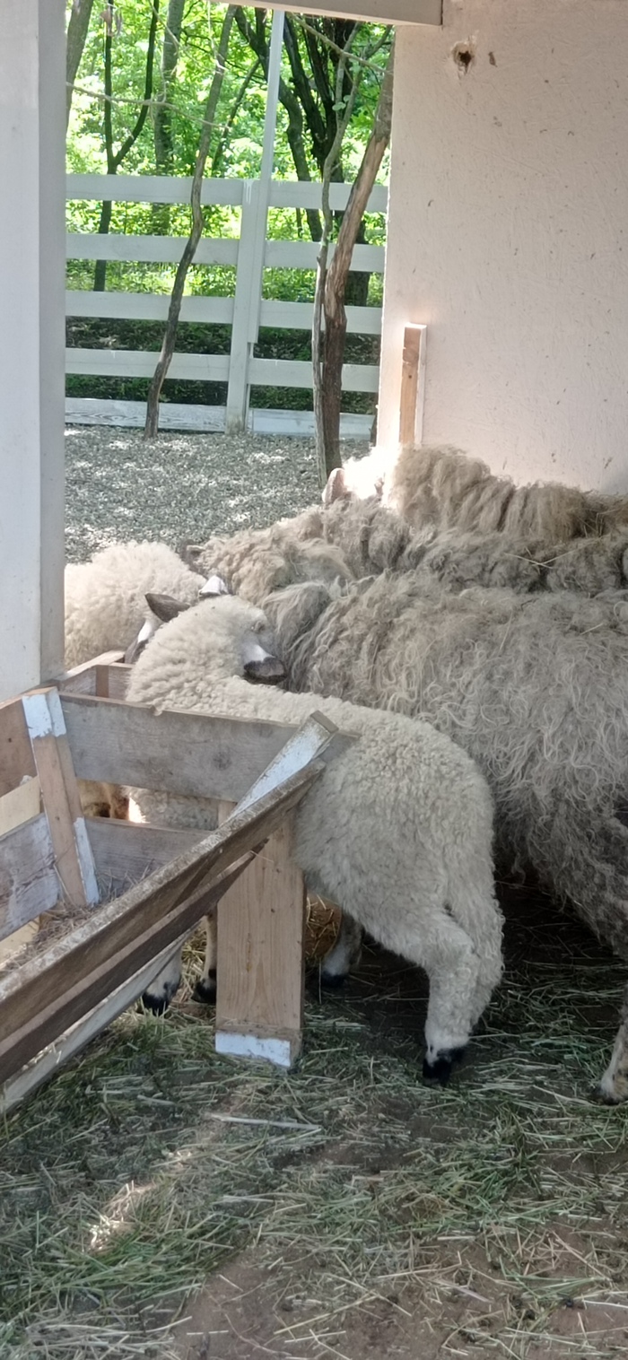 Валлийские бараны, которые живут при минусовой температуре в горах Швейцарии заросли шерстью, и наш климат явно не для них, учитывая то, что и зим нормальных у нас нет последние несколько лет. Шерсть у них очень густая, я просто не представляю как им жарко. Животное легко может получить тепловой удар. Они почти лежали и не вставали.