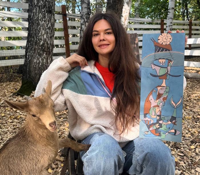 На обратном пути увидели маленького козлика, гуляющего на лужайке за загоном. Пытались его погладить, но он убегал) Ему постоянно не давали покоя желающие сделать фото.