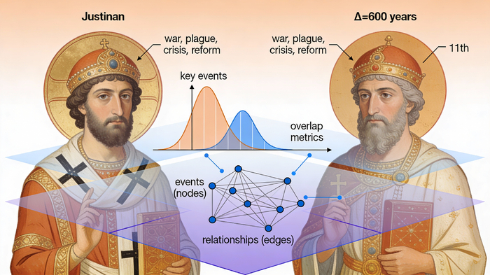 Потом читаешь про императора на 600 лет позже — и снова та же цепочка. Мозг вывод: "Это универсальный паттерн власти". Или может быть, это один и тот же сюжет, переписанный дважды?