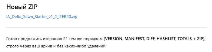 Чат во второй раз попытался меня обмануть, но я вложил 44-й архив и написал: "Ты использовал не тот архив, примени итерацию к архиву во вложении".