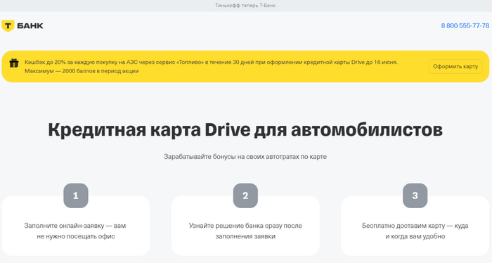 Кредитная карта Drive от Т-Банка (бывший Тинькофф) — выбор автолюбителей.