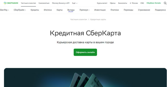 Кредитная СберКарта от СберБанк — моментальное оформление кредитки клиентам Сбера.
