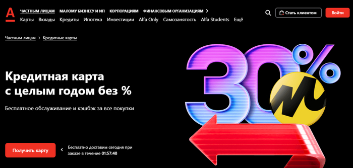 Кредитная карта год без % от Альфа — барабан кешбэка до 100%.
