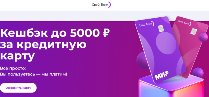 Кредитная Карта 120 дней от Свой банк — удобное пополнение через СБП.