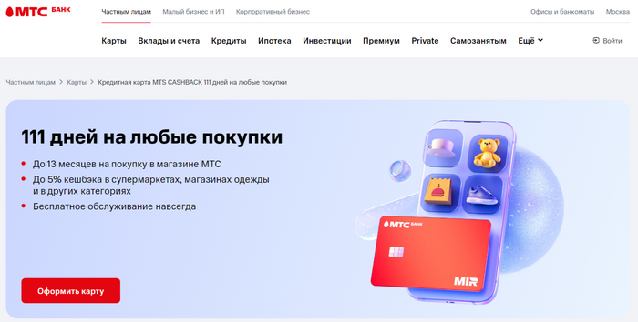 Кредитная карта CashBack от МТС Банк — 13 месяцев без % для покупок в МТС.