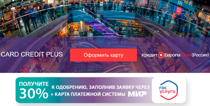 Кредитная карта CARD CREDIT PLUS от Европа Банк — повышенный кешбэк на развлечения.