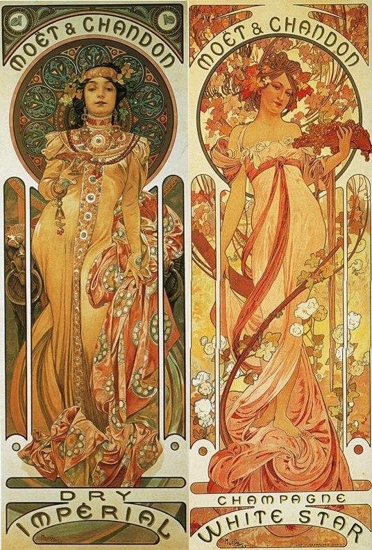 Афиши имели такой бешенный успех, что Бернар откладывала некую часть тиража и продавала в театре коллекционерам, а Муха же стал постоянным художником театра с шикарной зарплатой. Это развязало ему руки и, что уж кривить душой, привнесло много-много красоты в рекламу того времени. Так, шаг за шагом, он стал дизайнером рекламы шампанского, сигарет, печенья, а в итоге и первых денег молодой независимой Чехословакии. Но об этом мы поговорим когда-нибудь в следующий раз.
