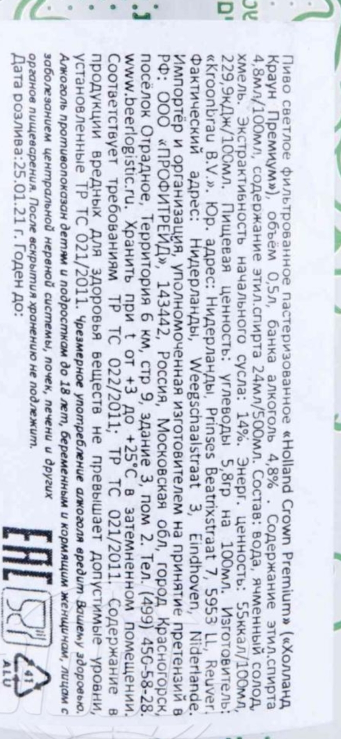 Обьем 0,5л., алкоголь 4,9%об., плотность сусло 11,2%.