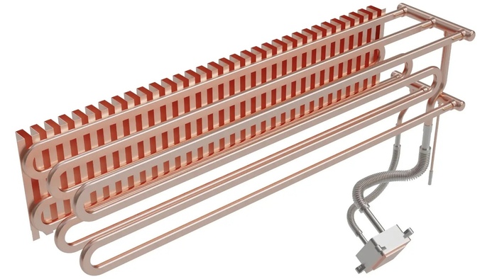 Не менее важная роль отведена конденсатору, имеющий множество медных ребер, приваренных к теплотрубкам.