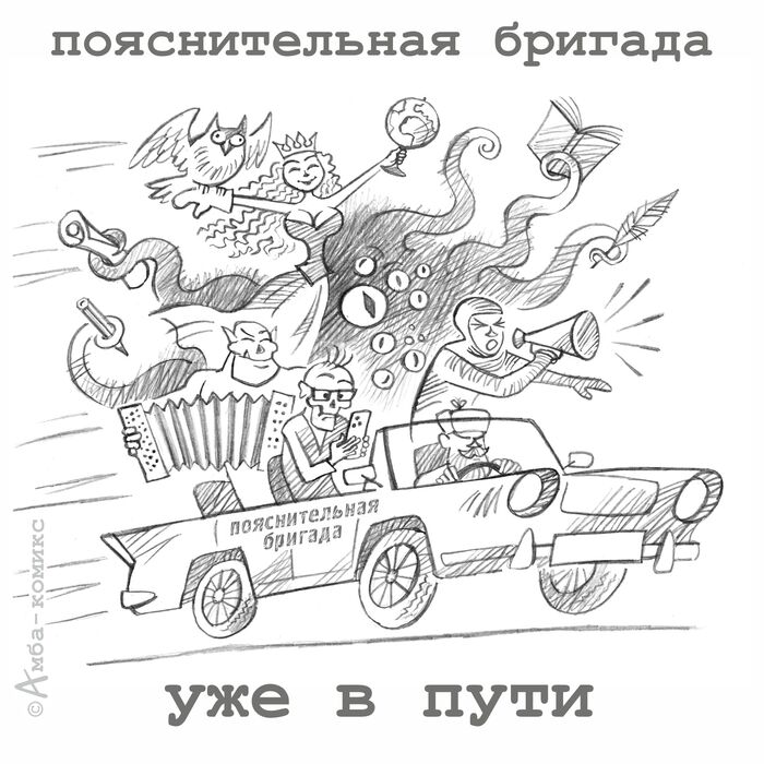 В комментариях к комиксам часто вызывают "пояснительную бригаду".