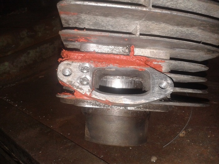 Далее я решил заменить карбюратор по быстрому и эта спешка стала причиной замены цилиндров, дело было так. Открутив явский карб и его штаны, я ставлю к-65. Завожу и мотоцикл набирает обороты, закрываю рукой воздухан- не глохнет, ага подсос... Ищем. Подсос был найден на стыке правой головы и штанов. Мне бы ослабить цилиндры и совместить плоскость впускных окон на цилиндрах со штанами, но нет, зачем же, я мог просто подтянуть болты посильнее. И я подтянул, после чего случился хруп...