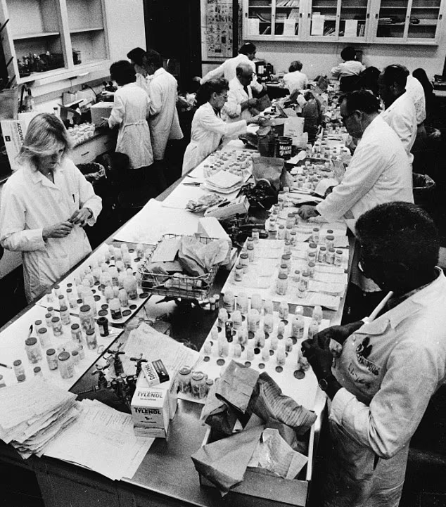 После того, как доктора насчитали 7 случаев скоропостижной смерти людей разных возрастов, они передали имеющуюся у них информацию в полицейское управление. Сотрудники органов оперативно выдвинулись по указанным адресам, где изъяли пузырьки с тайленолом, после чего передали их главному токсикологу округа по имени Майкл Шаффер. Проведя исследование, эксперт заключил, что капсулы с лекарством, находившиеся в каждом из 7 пузырьков, содержат около 65 мг цианистого калия.