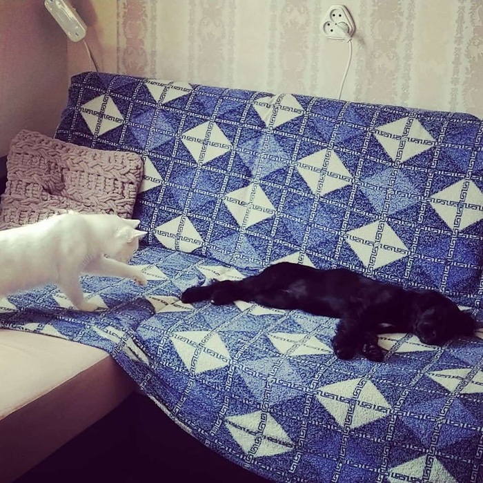 4. Лежанка/клетка. Клетки у нас не было. Мелочь не шкодила, поэтому и покупать клетку не было смысла. Будет ли спать собака с 5ами было сразу решено. Конечно блин будет! Я нахрена её брала? Но лежанка была. Обычно на ней кошки тусили. Либо Лунич приходила туда, если хотела уединения. Но команды Место у нас не было и нет до сих пор. Про команды отдельно напишу наверно.