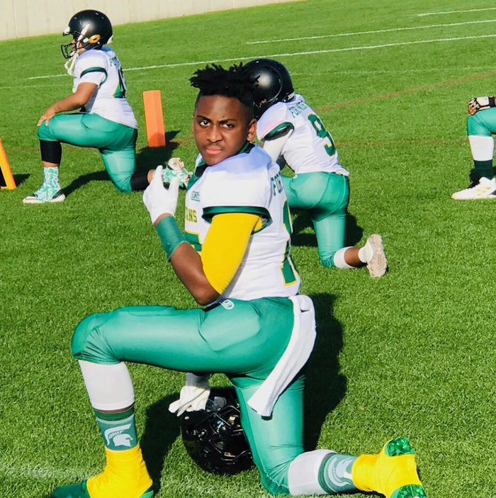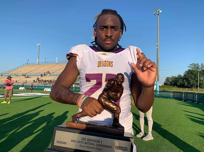 Иеремия – главная звезда «Даллас Дрэгонс», он играет на позиции раннингбэка, и его команда победила в финале чемпионата. В соцсетях Джонсона говорится, что его рост 180 см, вес 90 кг, а поступить в колледж он сможет только в 2027-м.