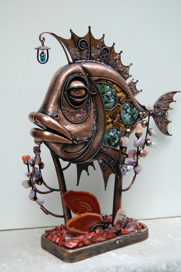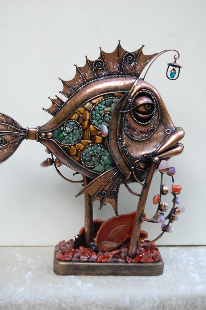 Здравствуйте дорогие пикабушники! Сегодня представляю вашему вниманию рыбу с полудрагоценными камнями , сделанную для музея камня. Вообще , образ рыбы очень благодарный)! Тут тебе и многообразие идеальных форм, невероятных цветовых решений, стилизация под различные стили! К тому же , рыба - это символ христианства, задолго до крестика.