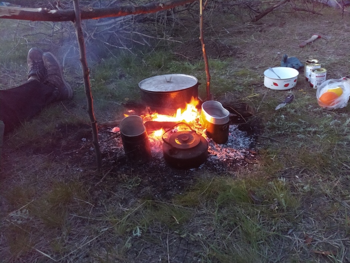 Вдоволь нагулявшись по Полковницкой, возвращаться в лагерь решили вдоль дремучего берега. Я спустился вниз и посоветовал остальным не торопиться, а выбрать место безопаснее, так как сам прокатился на заднице и чуть не ушибся - слишком крутой спуск. Парни так и не выбрав места, решили вернуться в лагерь, не предупредив меня, а я матерясь и чертыхаясь, обиженный на них и не только на них, пробирался берегом, где обходя поваленные деревья, а где и прыгая по валунам. Пот лился ручьем, футболку снял. В одних резиновых сапогах и шортах шел усталый и злой любитель палеонтологии. По очкам его лился пот, и скорее всего этот палеонтолог думал о смене хобби. Пить хотелось сильно, решил сократить путь и, облегчив страдания, подняться на верх - к лесу и таким путем, вернуться. Но забравшись на самый верх оврага, я увидел, что это не конец мучений - за вершиной начинается крутой спуск и такой же подъем. От жары и усталости заныло сердце, из-за этого брать еще одну вершину не решился. Спустился обратно к реке, умылся, отдохнул и продолжил преодоление этой полосы препятствий. Пока спускался к реке, нахватал колючек. Какое-то странное и нехорошее растение росло в этих краях, постоянно награждавшее нас своими шипами. А тут столько сразу - щедро, пришлось остановиться на время и повытаскивать их всех из груди, подмышек и спины. Наконец-то наш бивуак. Две кружки воды, спокойные лица и вся обида и злость мгновенно прошли. Рассказал мужикам о своих невзгодах и печалях. Пещенко сказал, что после принятого ими решения - к реке не спускаться, а по лесу вернуться в лагерь, он догадывался о моих невысказанных чувствах ко всем ним. День закончился быстро, так как после длительного перехода все уже просто валялись и посапывали в своих палатках, а к вечеру все потихоньку стали стягиваться к костру послушать армейские истории Антона Пещенко, год назад дембельнувшегося.