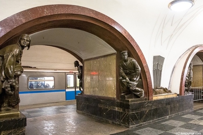 "Площадь Революции" – это еще один символ московского метро, известный своими знаменитыми бронзовыми скульптурами. На станции 76 фигур, изображающих людей разных профессий: революционеров, рабочих, колхозников, представителей интеллигенции.