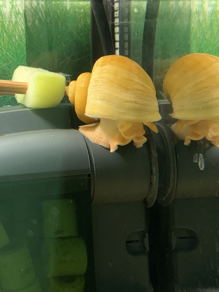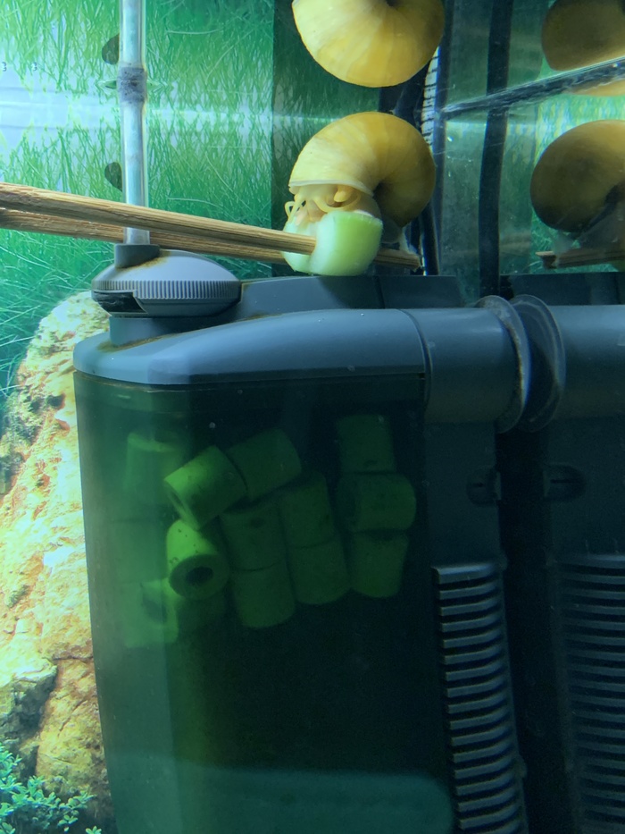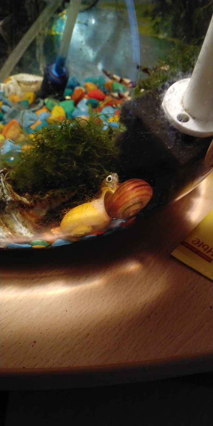 Сейчас улитос спокойно тусит уже неделю, ведёт себя прилично. Сом тоже впоряде.