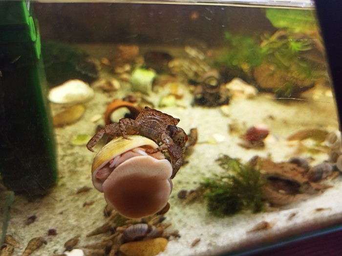 Вообще, уникальность этих улиток заключается в том, что, в отличие от своих собратьев, они разнополые. Т.е. размножаться они могут лишь при наличии партнера противоположного пола и определенных условий, вплоть до температуры воды и выбора места кладки (располагается кладка не в воде, а, например, на внутренней крышке аквариума, но и там масса нюансов для созревания/гибели кладки). Мои улитки, хоть и прожили несколько лет и достигли внушительных размеров (раковины до 5 см в диаметре), так ни разу и не размножились. Вроде как, дефицит у них с мужичками.