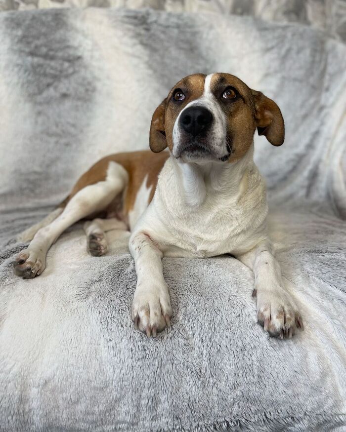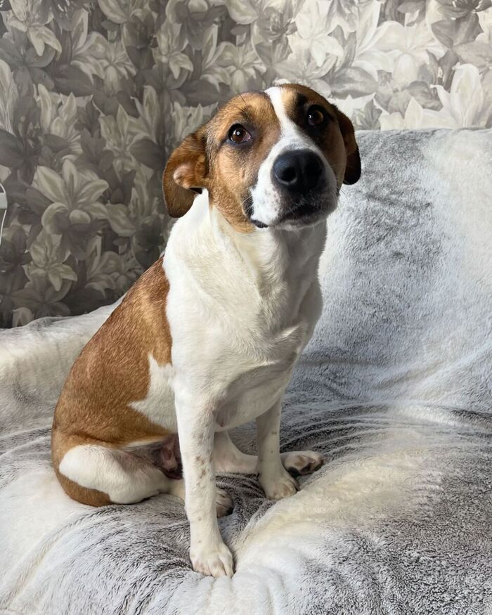 Сейчас Сара проживает во временном доме с другими собаками. Отношения с сородичами ровные.