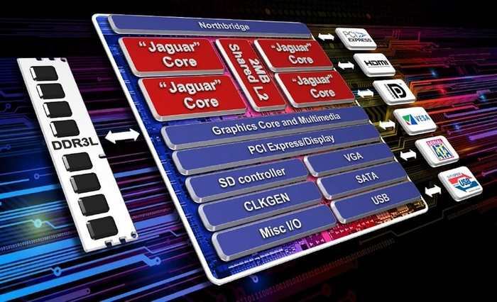 APU получили поддержку памяти DDR3L. В зависимости от модели, ее частота могла составлять 1066, 1333 или 1600 МГц, но канал памяти был все так же один. Максимальный TDP четырехъядерных моделей составил 25 Вт, а тактовая частота достигла 2.2 ГГц. Новые системы на чипе нашли применение как в мобильных устройствах, так и в десктопных процессорах. Специально для последних была выпущена новая платформа AM1, а названия процессоров сменились на привычные Athlon и Sempron. Мобильные версии получили более знакомые по APU названия A4 и A6. Вдобавок к этому ядра Jaguar легли в основу APU для приставок PlayStation 4 и Xbox One, а также их улучшенных версий PlayStation 4 Pro и Xbox One X.