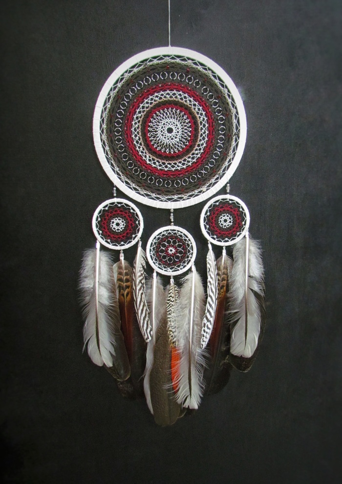 А вообще этот ловец получился самым трудозатратным за последнее время. Когда мне пришли все материалы, обнаружилось, что они все разных оттенков золотого) подвески слишком яркие, дракон слишком бледный, а перья вообще ни туда ни сюда. Пришлось аккуратно красить все кисточкой в одинаковый золотой цвет, чтобы все смотрелось гармонично. Ещё и иероглифы пришлось учиться писать, та еще задачка) но результатом я очень довольна!