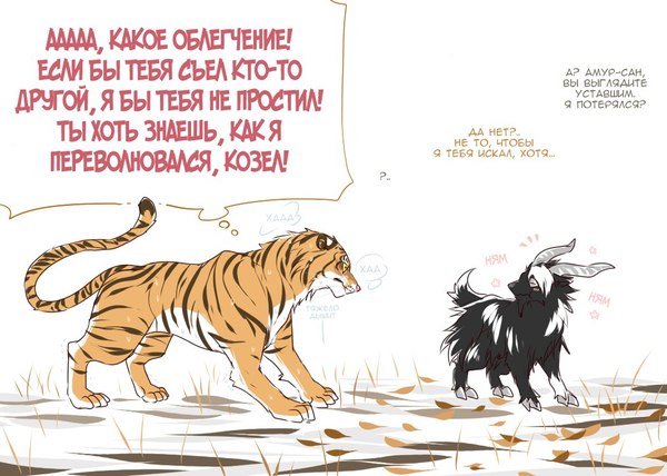 Для лечения применялись антибиотики и противоотечные препараты. Тимур получил серьезные травмы, когда его скинул со склона тигр Амур. Козел обнаглел и стал нападать на полосатого друга. Тот не выдержал и дал наглецу оплеуху. В результате козел лечился почти полгода.