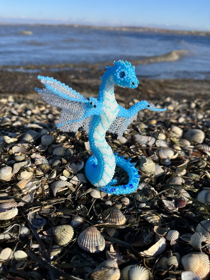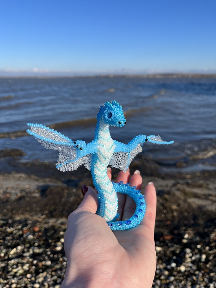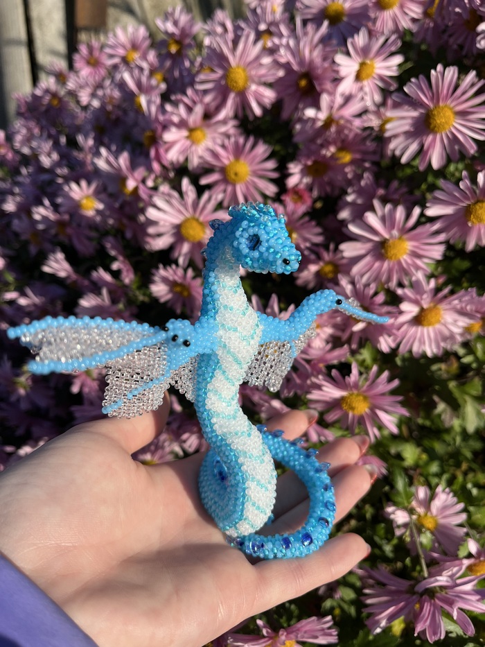 Для гребня дракона вплетала японские бусины Миюки. Их разного цвета и размера можно найти в творческих магазинах и на разных маркетплейсах.