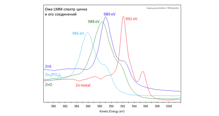 Тут по вертикали отложено количество отсчетов (количество электронов), а по горизонтали - их энергия связи (а если смотреть слева направо, то кинетическая энергия) в электрон-вольтах. Но в волшебный мир спектроскопии мы погрузимся в другой статье, а сейчас вернемся к железякам.