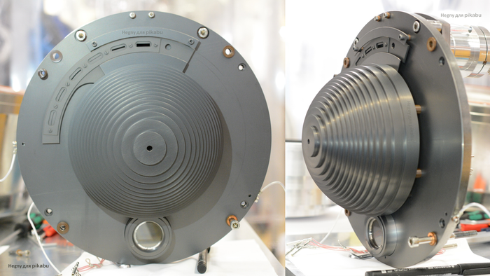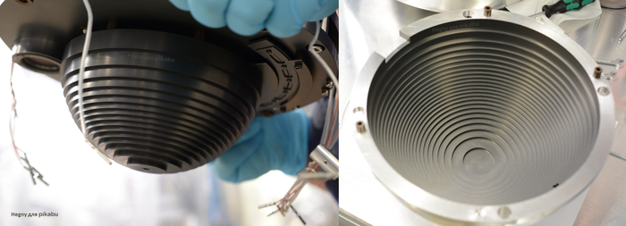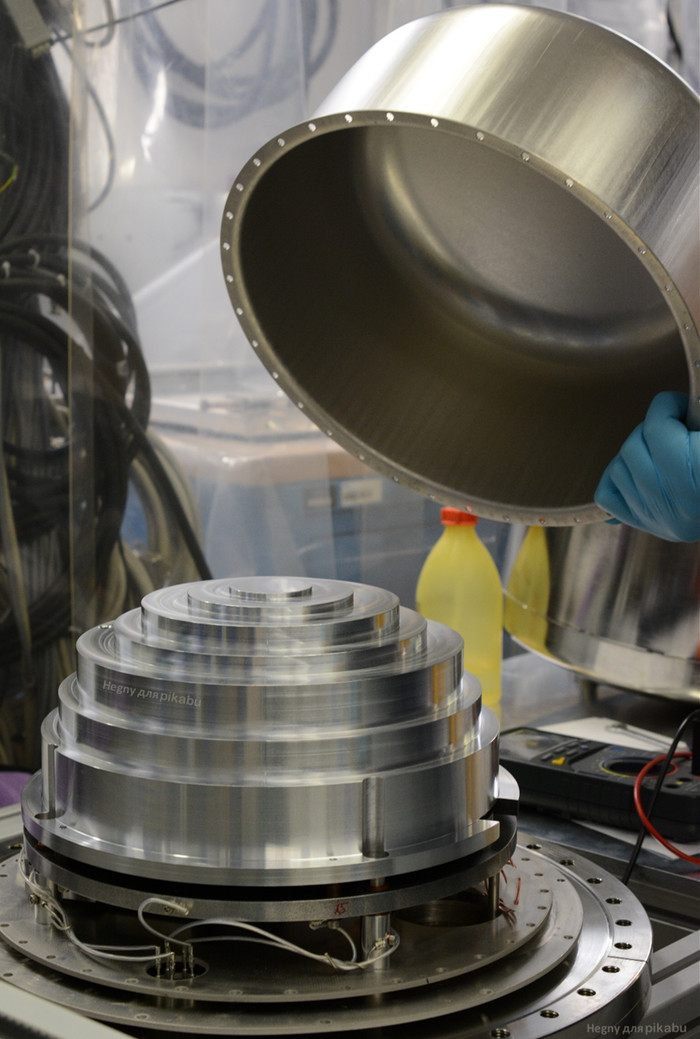 Но сейчас нас интересуют вон те блестящие полусферы. Кое-где они "голые", но во многих местах прикрыты фольгой, как и другие вакуумные камеры.