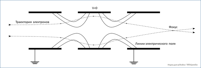 Вот картинка, иллюстрирующая принцип работы электростатической линзы: