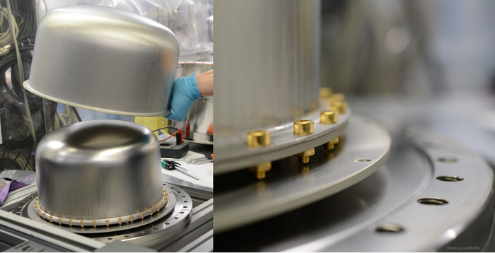Медная выкуумная прокладка остается на крышке и тут её не видно. Зато у нас тут снова какая-то кастрюля, а не полусфера.
