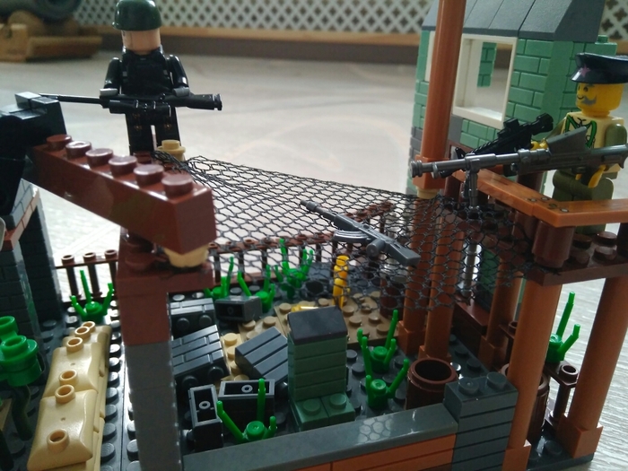 Завершая обзор, как это уже повелось доброй традицией, немного творчества! Хоть модель и довольно устойчиво стоит на двигательной установке и нижней турели, мне этого показалось не достаточно. Из кубиков, уже имеющихся у меня я собрал задние выдвижные шасси, которые прячутся в ниши между двигателями и переднюю опору, которая так же складывается и прижимается к корпусу корабля. Данные конструкции не показаны в фильме, потому поле для творчества широчайшее!