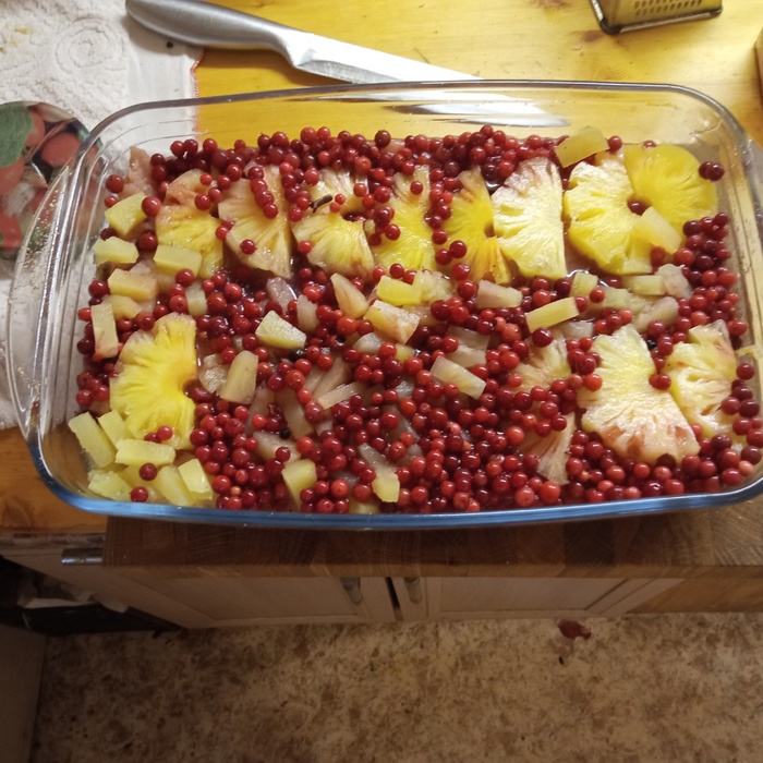 Сегодня у меня Свинина с брусникой и ананасами запеченая под сыром.