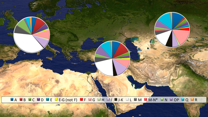 Поскольку одомашнивание лошадей в евразийских степях, регионе, исторически известном своими так называемыми “конными культурами”, вероятно, началось в четвёртом или, возможно, даже пятом тысячелетии до н. э., долгое время утверждалось, что лошади Передней Азии являются потомками этих ранних одомашненных степных лошадей, которые прибыли в регион по средствам ещё недостаточно изученных процессов миграций или обмена с участием жителей Причерноморско-Каспийской степи и Кавказских регионов. Всего у лошадей, на данный момент выявлено 18 основных гаплогрупп (от A до R), время разделения которых относится в основном к неолиту и более поздним периодам.