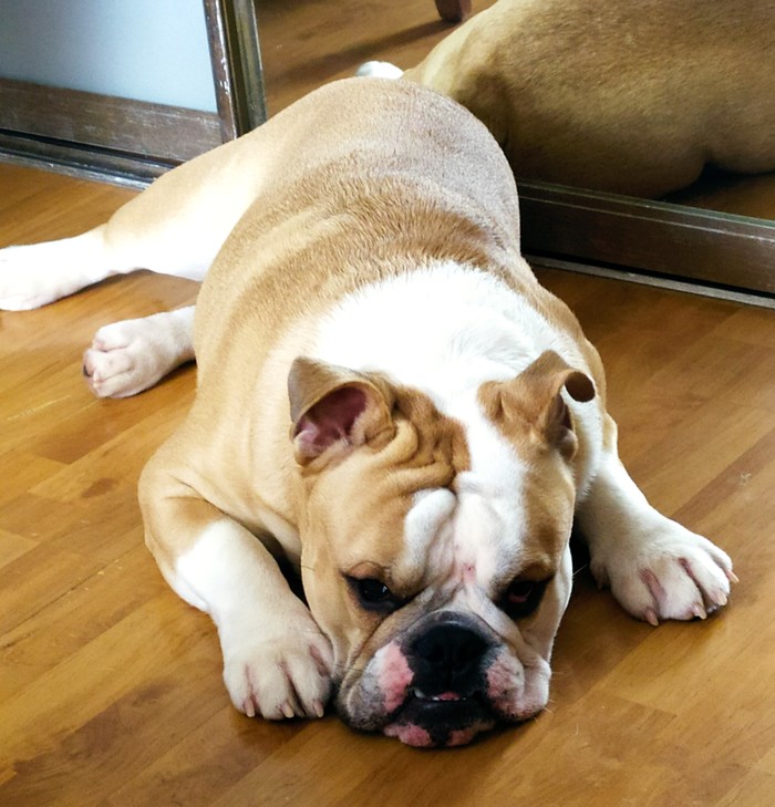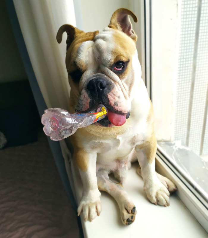 Около года назад, в разгар пандемии появился у нас пес, вроде как английский бульдог, но это не точно.