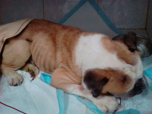 Сейчас бульдог Сэм находится в ветклинике, он сильно истощен, но жив. Фото: Приют "Мопсодом и компания"