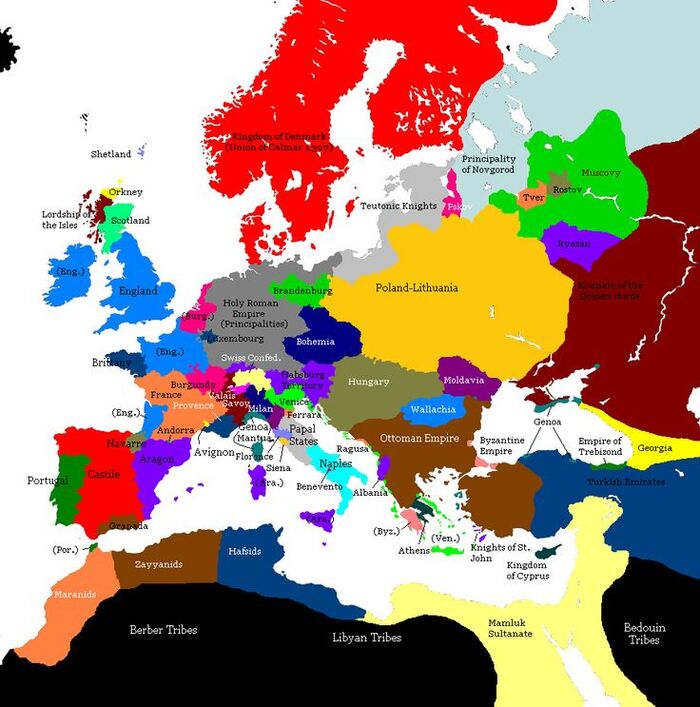 Перед тем как перейти к дальнейшему повествованию, стоит взглянуть на карту Европы 1460-х годов.