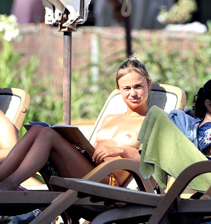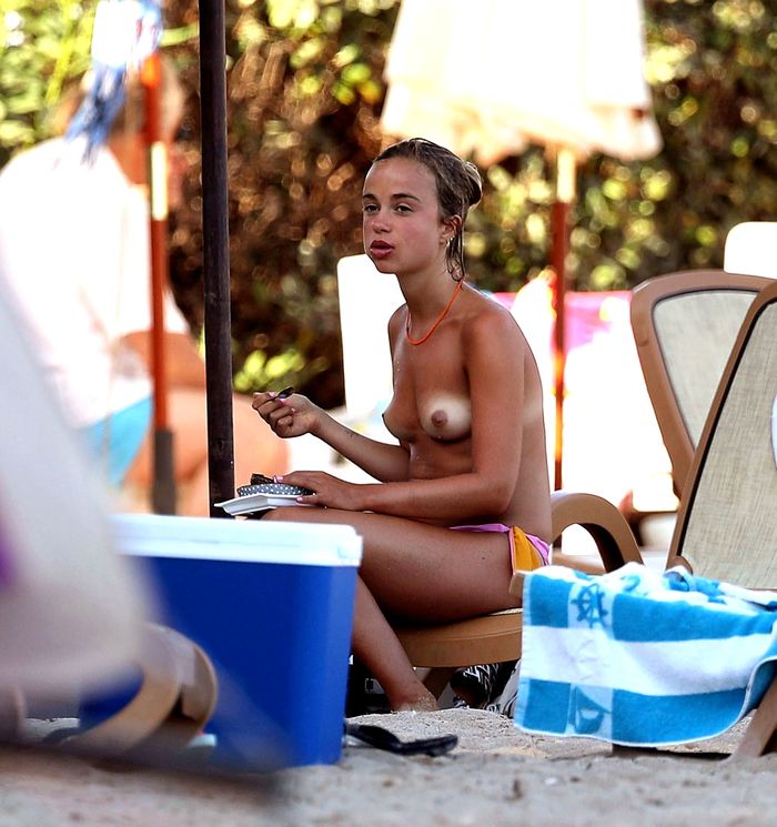 22-летнюю девушку сняли на Ибице. Она спокойно прогуливалась по пляжу топлес, никого не стесняясь.