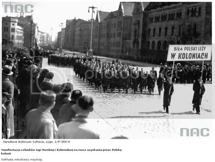 С 1938 г. в Польше с большим воодушевлением отмечались т.н. Дни колоний. В костёлах служили мессы, на городских стенах вывешивали пропагандистские плакаты с энергичным лозунгом: "Желаем колоний для Польши!"..."
