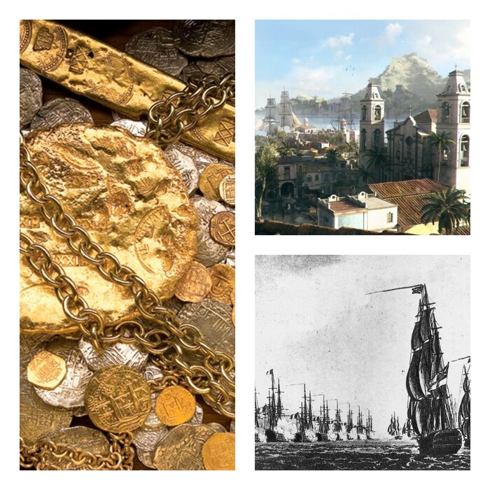 Испанский флот сокровищ, называемый то Золотым, то Серебряным, предназначался для вывоза из Нового Света в Испанию самых различный ценностей, добытых на недавно открытом материке. Золото и серебро, драгоценные камни, табак, какао, индиго, всё это шло потоком из колоний в метрополию. Ежегодно два флота покидали Севилью, один шел в мексиканский Веракрус, другой в Картахену (современная Колумбия) и Портобелло (Панама), в которые до этого стекались сокровища со всего континента. Потом плыли в Гавану, и оттуда караван шел в Европу.