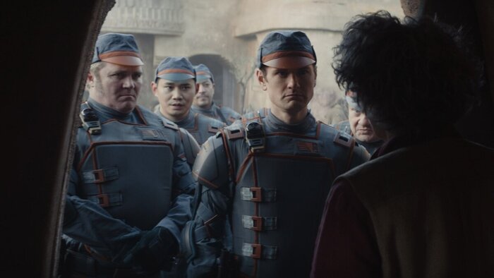 Во-вторых хорошо то, что сериал очень такой, приземленный, как в плане истории, так и окружающего мира. Здесь никто не спасает галактику, не взрывает планеты, нет космических баталий огромных боевых кораблей или волшебников со световыми мечами, а все декорации выглядят пошарканными, поношенными, побитыми жизнью. Как и персонажи, собственно. Это, кстати, еще одно явное отличие от того, что традиционно понимается под Звездными Войнами – дух легкого фэнтезийного приключения про спасение принцессы в компании благородного разбойника сменился на суровый ветер реализма. Красивая и прилизанная столица тоже присутствует, но скорее фоном, и там тоже есть забавные моменты: сенатор, например, не может менять внешний вид своего дома (чтоб не забывала, кто в этом доме хозяин).