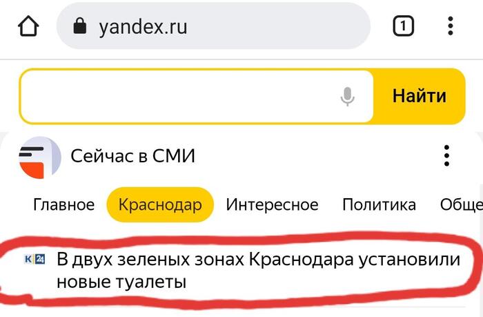 Новость об общественном туалете вышла вечером на первую строчку в рейтинге краснодарских новостей Яндекса. И это настоящий пиар-успех мэрии. Теперь все будут знать о туалете нового образца в столице Кубани. Игра, как говорится, стоила свеч. Да, и мэр Краснодара, возможно, благодаря такому инфоповоду вновь возглавит рейтинг мэров российских городов.