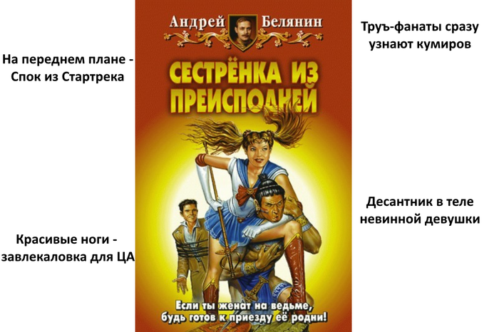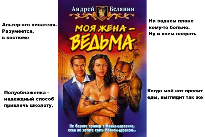 К слову, если кто-то вдруг скажет, что идею ангела и беса, которые в течение всей истории подъебывают друг друга на предмет рогов и платья, Белянин позаимствовал в мультфильме «Новое обличье императора» от Диснея, разочарую – первая книга с очаровательной парочкой Анцифером и Фармазоном вышла за год до выхода мультфильма, так что Белянин тут молодец (хотя подобный прием использовался и раньше, тут прослеживается прямая аналогия).