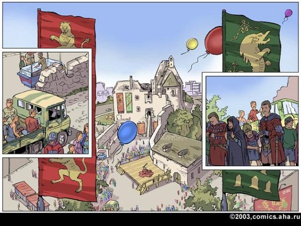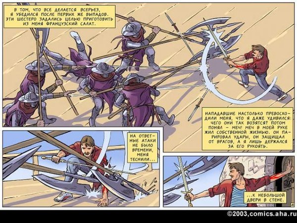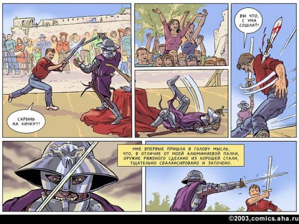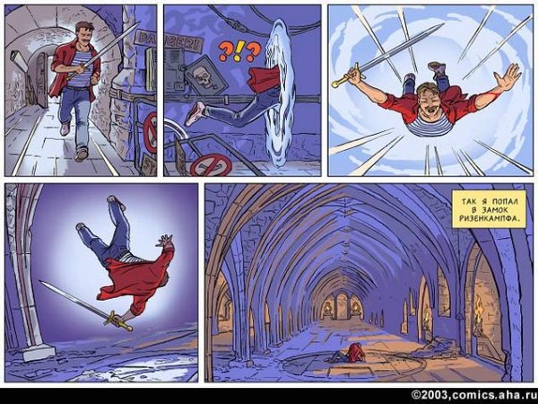 Здесь же на абсолютно серьезных щах в пусть и не совсем нормальном окружении, но все же мире, приближенном к нашему с вами, Белянин изображает вот такое вот чудо с шизой на всю голову. Иначе никак не объяснить, почему она с ледяным спокойствием воспринимает быт ведьмы и ее мужа в виде летающих тарелок, газетки, которая норовит зависнуть у тебя перед глазами, чтобы ты ее почитал, и тому подобное, но при этом не выходит из роли десантника в матроске даже во сне. И все вокруг воспринимают это так же относительно спокойно вместо того, чтобы срочно названивать в психиатрическое. Вывод: