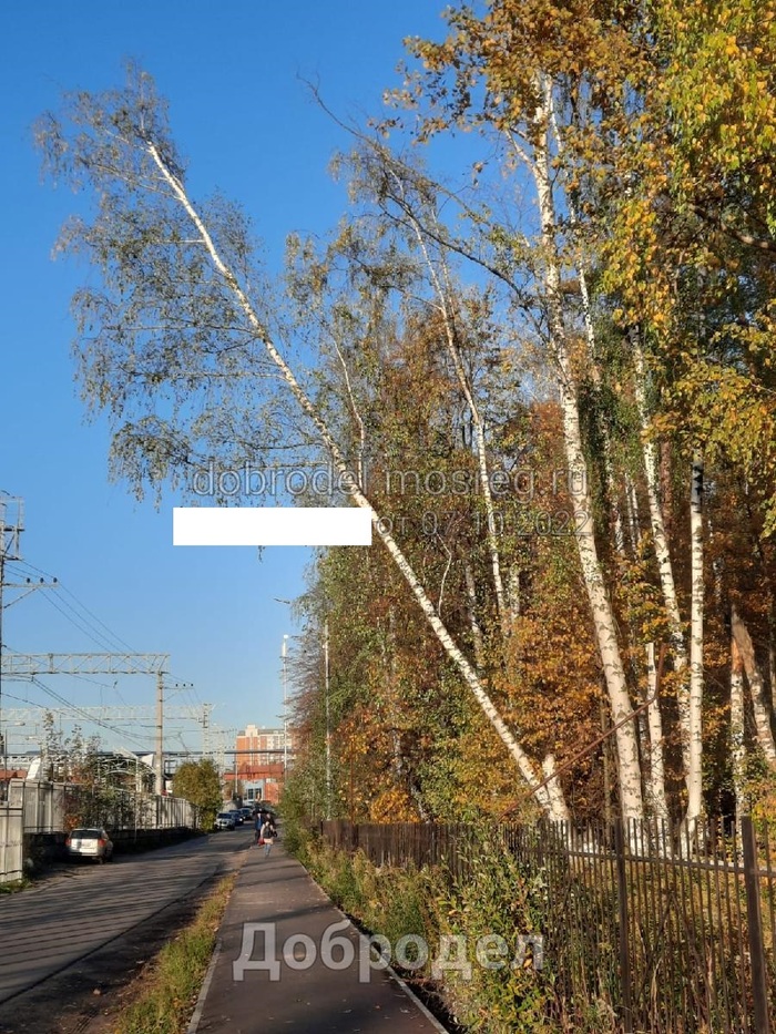 Вот после очередного сильного ветра (октябрь 2021) над тротуаром сломалась береза и в итоге повисла на соседнем дереве. При ветре скрипит и шатается. УК говорит - это за забором - не наша компетенция.