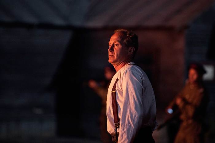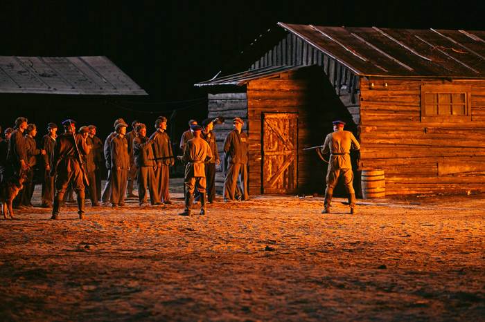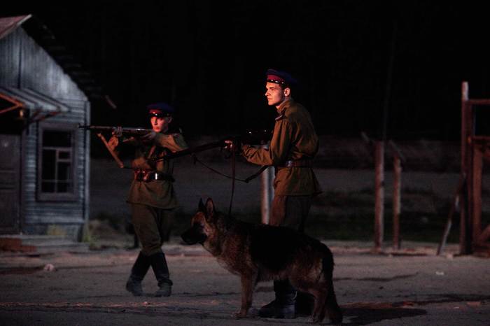 Мы приехали на съемку, когда стемнело, потому что сцена должна была сниматься ночью. Вся массовка в военной или «зэковской» форме слонялась туда-сюда, казалось, что вообще ничего не происходит. Для фильма была построена настоящая зона с бараками, прикреплены плакаты эпохи СССР. Все выглядело очень натурально. Когда на площадке появился Андрей Папнин, на мой взгляд он — лучший российский актер, который воплощал отрицательных персонажей очень глубоко и тонко, что начинаешь волей-неволей ему сочувствовать и даже оправдывать, все как-то оживилось. Я ,конечно же, с собой взяла фотоаппарат, но оказалось что снимать нельзя. Может это кого -то бы остановило, но не меня. Аккуратненько, несмотря на тяжелые условия ( ночь, шевеленка) мне удалось сделать несколько кадров. Лучшие ,на мой взгляд, хочу вам показать.
