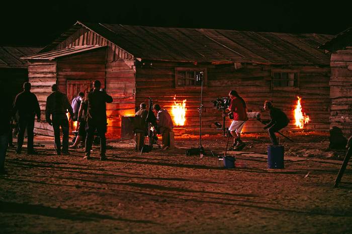 Однажды наш приятель, который в то время работал в RWS ( Всемирные русские студии) позвонил и сказал: «Ребята, сегодня в Сертолово снимаем эпизод, где будут сжигать бараки заключенных, будут известные актеры — Игорь Петренко, Андрей Панин. Хотите поехать?» Ну, разве такое можно пропустить?