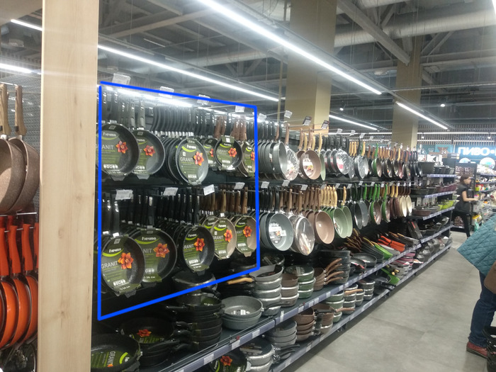 Сковородки.  Из всего многообразия китайских товаров я обвел синим те, где указано что производство Россия (ООО Нур, г. Вятские Поляны). Где сковороды из города Белая Калитва? Где сковороды Кукморского Завода Металлопосуды? Почему так много сковород из Китая?